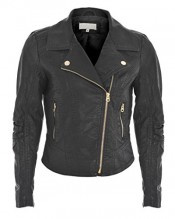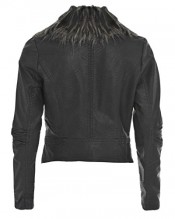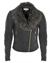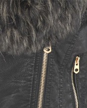 Womens PU Leather Detachable Faux Fur Collar Biker Jacket (JKT6655)