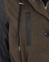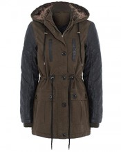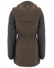 Womens PU Quilted Sleeve Faux Fur Hooded Military Parka Coat (JK6326)