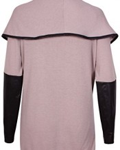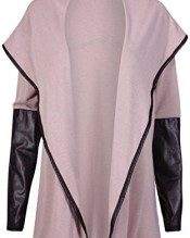 Womens PVC PU Long Sleeve Ladies Stretch Waterfall Trim Open Fitted Cardigan Jacket Coat Mocha 8-10