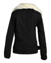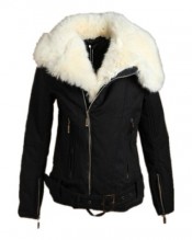 Womens Winter Warm Black Motorcycle Jacket Thick Coat Parka Faux Fur Lapel