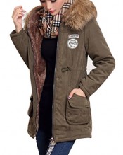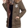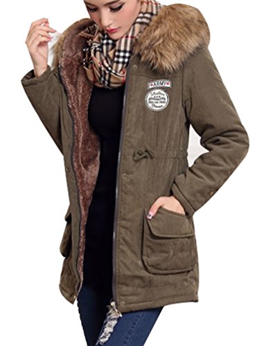 Yasong Women’s Girl’s Zip Up Military Hooded Quilted Padded Parka Jacket Winter Overcoat Army green UK 10
