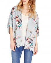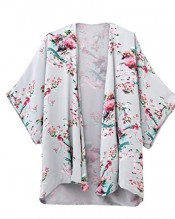 Zeagoo Summer Autumn Women Vintage Floral Bird Print Kimono Cardigan Jacket Blouse