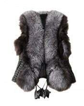 Zeagoo Vintage Waistcoat Women Leather Fur Outerwear Coat Jacket Vest Black