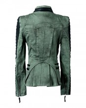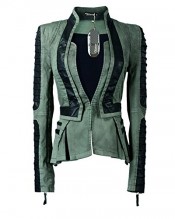 Zicac 2014 New Unique Women’s Denim Jeans PU Leather Jacket Zip Long Sleeves Fitted Blazer Jacket Pleated Tuxedo Coat (UK 10, Green)