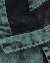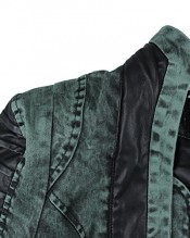Denim green / grey blazer featuring PU leather contrast panel and zip detailing at sleeves.