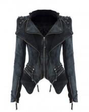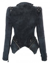 Zicac Woman Sharp Power Studded Shoulder Notched Lapel Denim Jeans Tuxedo Coat Blazer Jacket (UK14, Grey)