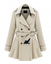 ZLYC Women Lady Fashion Fit & Flare Beltted Double Breasted Classic Trench Coat (Tag XL(UK16))