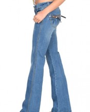 60s 70s Style Bootcut Flared Hipster Stretch Distressed Jeans – Faded Blue (10)