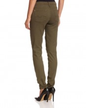 Olive green jeans have a skinny, slim fit