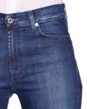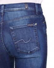 The 7 For All Mankind Rozie Slim Illusion High Waisted Jean in Dark Tribe Blue is crafted with the Slim Illusion Second Skin technology, giving the jean amazing recovery, stretch and comfort. This jean is a happy medium between a skinny jean and a straight leg with flattering fading on the thigh of the rich blue denim.