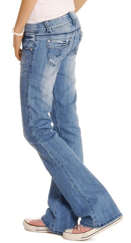 Stretch jeans – boot-cut womens jeans with exposed leg. Colour: blue – blue Wash. Five-Pocket bootcut Jeans. Stretchy material made of 80% cotton, 18% polyester 2% elastane. Inside leg approximately 82cm. Rise approximately 18cm.