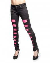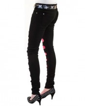 Criminal Damage Rose Lace Ripped Skinny Fit Jeans (Black/Pink) – 10 UK
