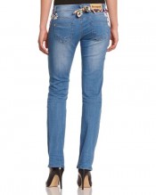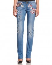 Desigual Women’s Flores Printed Slim Jeans, Denim Medium Wash, 32W x 32L (Brand Size: 32)