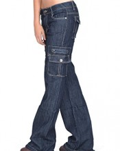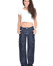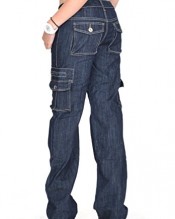 Glamour Outfitters Dark Wash Wide Leg Denim Cargo Pants Combat Jeans – Indigo (14)
