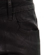 Mid Rise Wax finished colour wash Black Denim Straight Leg Jeans with fitted waist, front fly button fastening and five pockets.