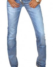 Very low rise women hipster jeans. Tight fit, straight leg womens jeans. Extreme flare wash and stretchy material. X-zipper application. Made of 80% Cotton, 18% polyester and 2% elastane. Denim blue.