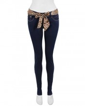 Leopard Tie Belted Skinny Jeans (10,Navy)