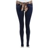 Leopard Tie Belted Skinny Jeans (10,Navy)