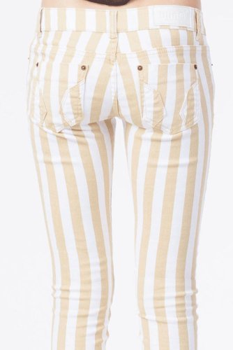 New Ladies Womens Beige Striped Skinny Fit Stretch Jeans Trousers And Pants (12 UK)