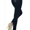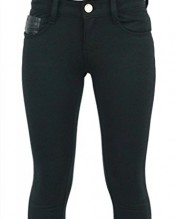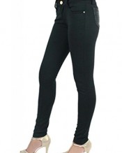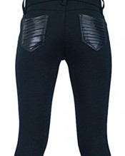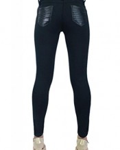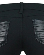 Get the fabulous look with gorgeous leather back pockets leggings. You cannot go wrong with this sleek biker jegging includes gold tone zip up and one button fastening