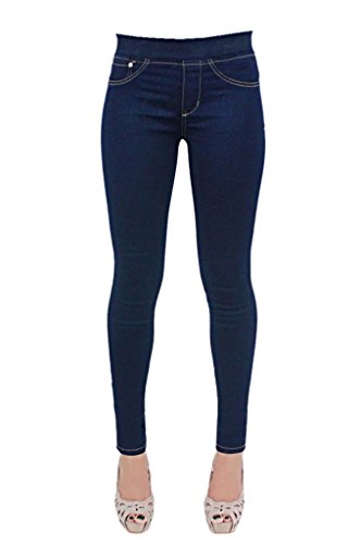 New Womens Ladies Blue Jeans JEGGINGS Simple ELASTICATED Waist Stretchy Skinny Pants UK Sizes 14