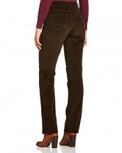 Jean, Straight leg, five pocket, front zip and stud, NYDJ original slimming fit, in black or brown stretch cotton corduroy.