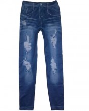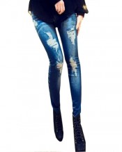 Sexy Stylish BIG Ripped Effect Denim Look Faux Jean Stretchy Leggings Tights Pants Jegging