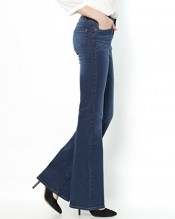Flared jeans (straight leg down to the mid-thigh then flared). Jeans with regular waist (3 to 4 cm below the navel). Bringing back the Seventies! Hem width 54 cm. Length 34: inside leg 86 cm for height over 1.68 m. Stretch denim. 99% cotton, 1% elastane. 5-pocket style jeans. Zip fly.