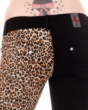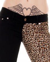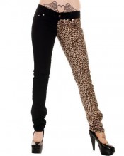 Skinny Stretch Jeans Natural Leopard & Black Split Leg Low Rise Hipsters Punk Rock Party Glam