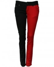 Skinny Stretch Jeans Red & Black Split Leg Low Rise Hipsters Punk Rock Party Glam (16)