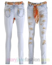 Womens Acid Wash Distressed Gold Glitter Jeans