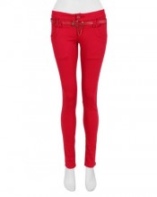 Womens Ladies Animal Belt Stretch Slim Skinny Fit Jeans Coloured Trousers Pants (Red,6)