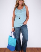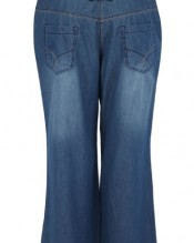Plus size blue denim wide leg slouch jeans with 30″ leg. Made in a lightweight 100% cotton for extra comfort and cooling factor. Also with detailed front pockets featuring stabstitching and panelling, two back patch pockets and 10 belt loops. The waistband is fully functioning with two buttons and a zip fly.