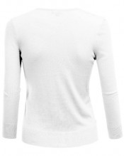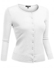 AWOCAL080 is 3/4 sleeve crew neck button front cardigan with ribbed cuff and bottom