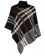 Berry Check Tartan Knitted Ponchos Womens Cape Wrap Shawl Jumper Winter Knitwear Black