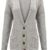 CEXI COUTURE NEW LADIES CABLE KNITTED BUTTON GRANDAD WOMENS KNITED BOYFRIEND CARDIGAN TOP LIGHT GREY ONE SIZE 8-14