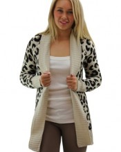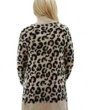 Leopard Print Long Sleeve Chuncky Cardigan With Ribbed Trim and Cuffs