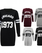 WOMENS CHICAGO 1973 VARSITY STRIPED SLEEVE LADIES LONG JUMPER SWEATSHIRT TOP, Available size: UK 8 10 12 17, Comes in Black White and more!, Material: 95% Polyester 5%Elastane, Length: 86
