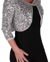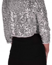 EyeCatch – Scarlett Sequin Chiffon Long Sleeve Top Bolero Shrug Cardigan Silver Medium