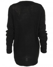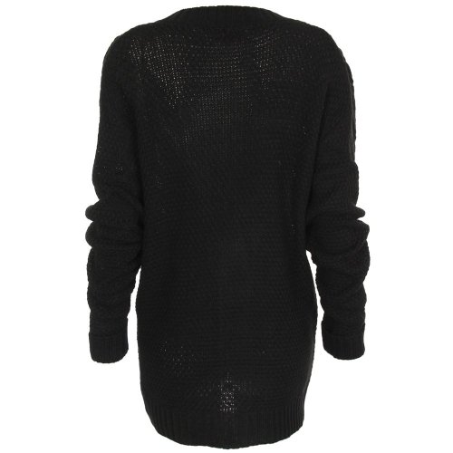 Krisp Womens Chunky Cable Knit ribbed hem deep v neck Button Down Full sleeve Cardigan Knitwear 9602 (S/M (UK 06-10), Black)