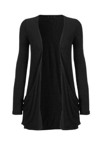 Ladies Plus Size Pocket Long Sleeve Cardigan 16-26 (24-26 XXXL, Black)