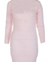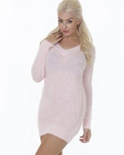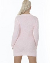 Ladies V-neck Fluffy Jumper Dress – Baby Pink – S/M