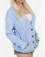 Love My Fashions Long Sleeve Full Length Cable Knit Knitted Boyfriend Cardigan – Baby Blue – Size 8 10 12 14 S M L XL