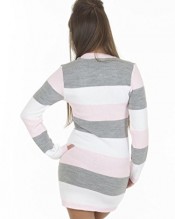 Perfect for winter keep cosy and comfortable in style with this horizontal striped long sleeve v-neck jumper dress.