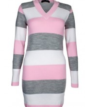 WomenÆs Ladies Full Length Striped V-Neck Knitted Jumper Dress.