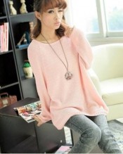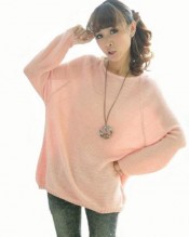 Luckshop2012 Pink Women Grils Batwing Round Neck Knitted Pullover Jumper Loose Long Sweater