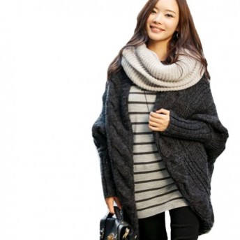 Luckshop2012 Womens Stylish Batwing Sleeve Slit Knitting Cardigan Wrap Cape Sweater Top Loose Color Dark Grey