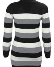 N38 NEW WOMENS LADIES KNITTED STRIPED V-NECK JUMPER (M/L (UK 12-14), BLACK)