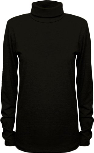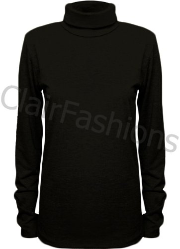 New Ladies Polo Neck Stretch Long Sleeve Womens Plain Top Jumper Black 8/10