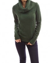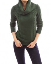 PattyBoutik Drape Ribbed Cowl Neck Cable Knit Pullover Long Sleeve Knitwear Jumper (Green 12)